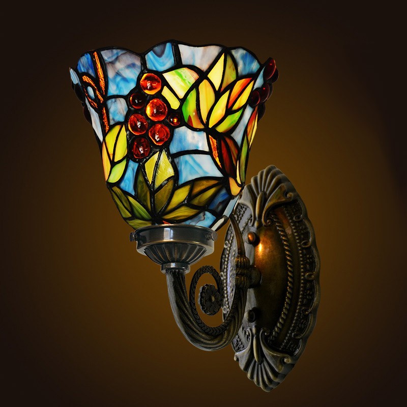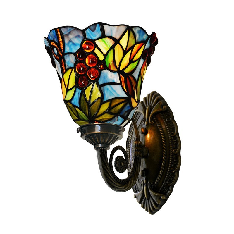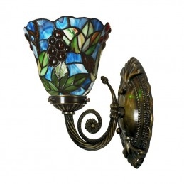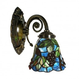 Aplique de pared de cristal de colores Tiffany de 1 luz y estilo rural en color uva de 18 cm