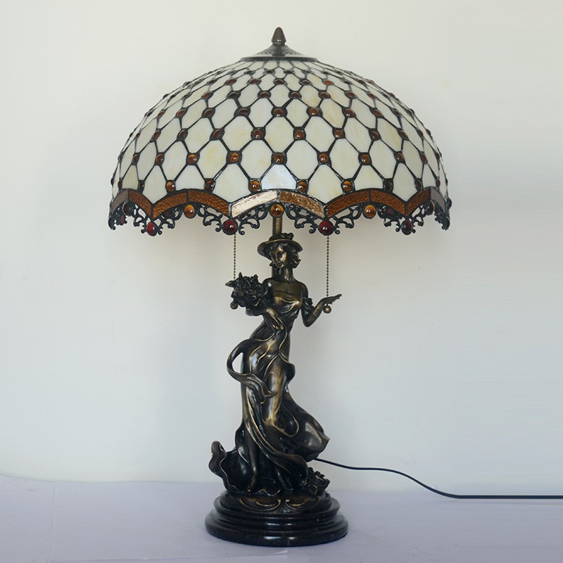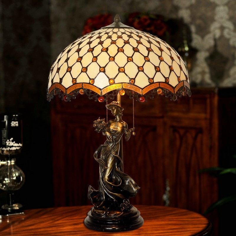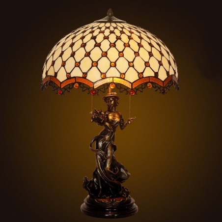 Lámpara de mesa retro de cristal de colores de Tiffany