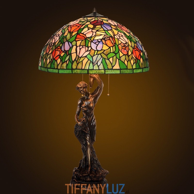 Lámpara de mesa Tiffany de cristal tintado con forma de tulipán de 50 cm