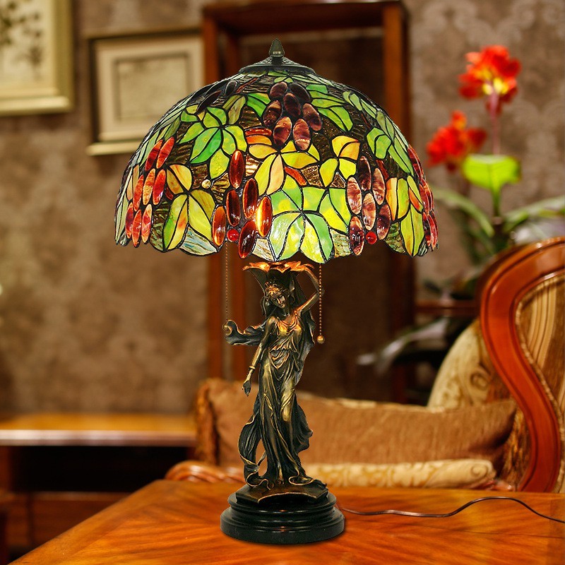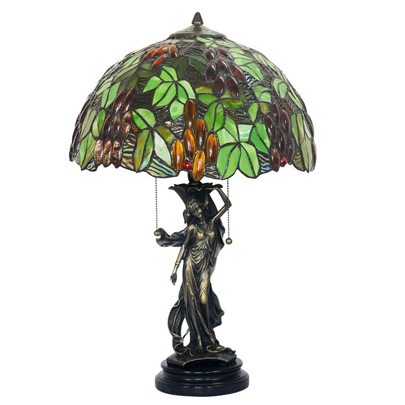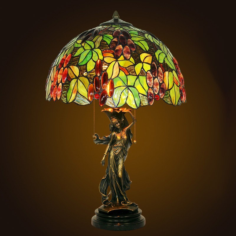 Lámpara de mesa de cristal de color Tiffany rural de 40 cm