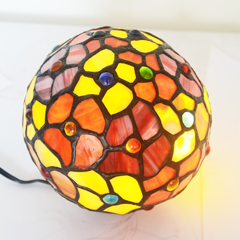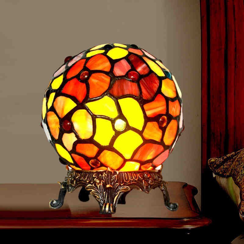 Lámpara de mesa con vitrales de Tiffany en color rojo