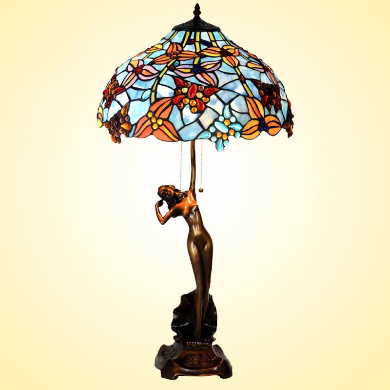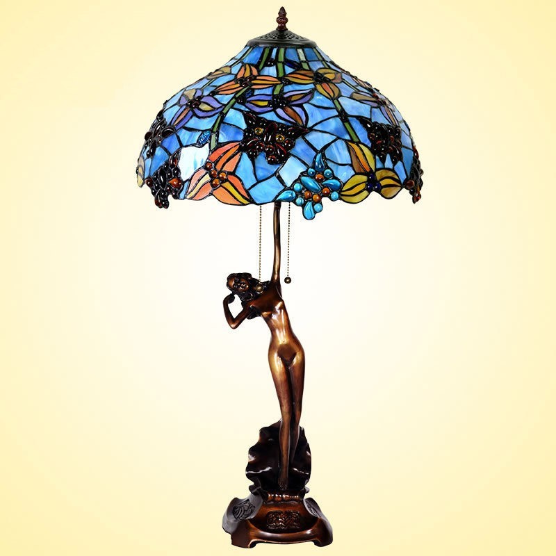 Lámpara de mesa de cristal de color Tiffany retro de 40 cm