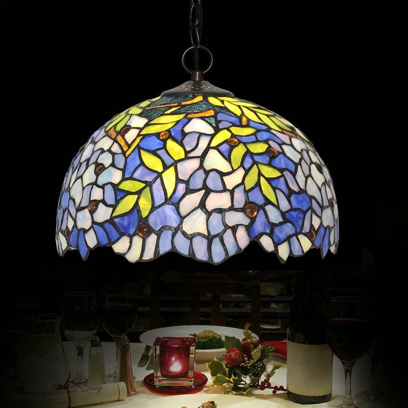 Lámpara colgante de cristal de colores Tiffany Wisteria de 30 cm