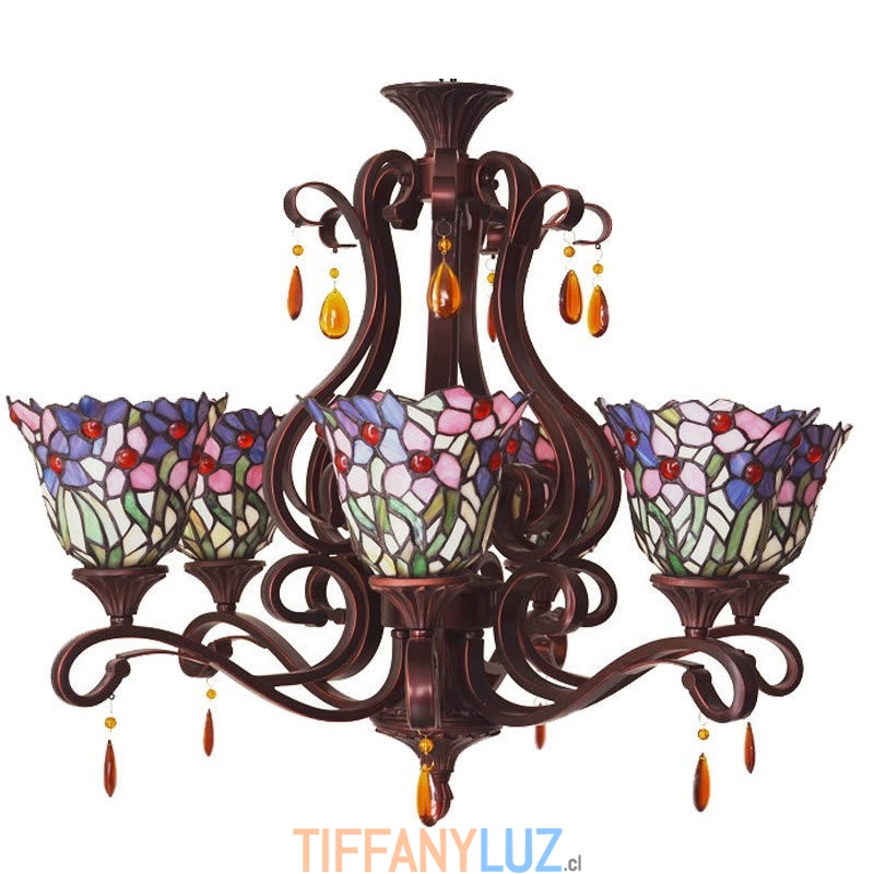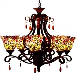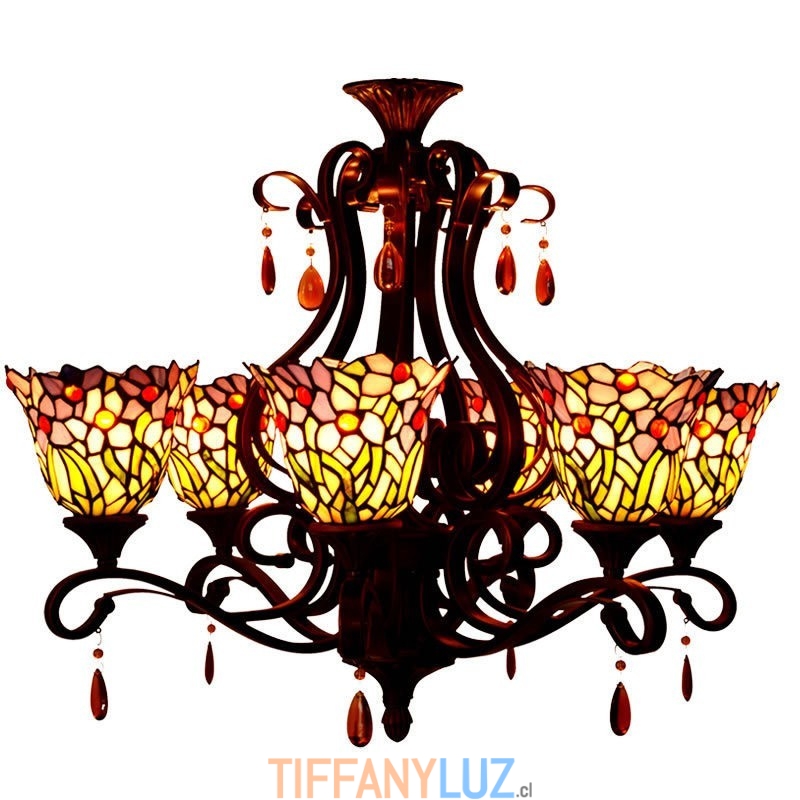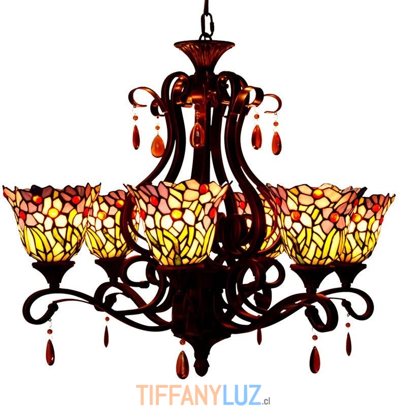 Lámpara de araña de cristal de colores Tiffany de 6 luces