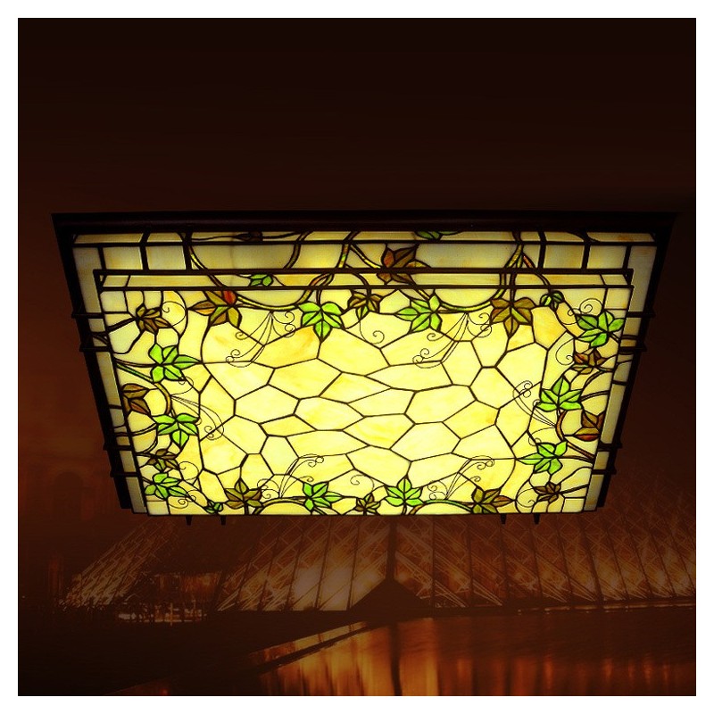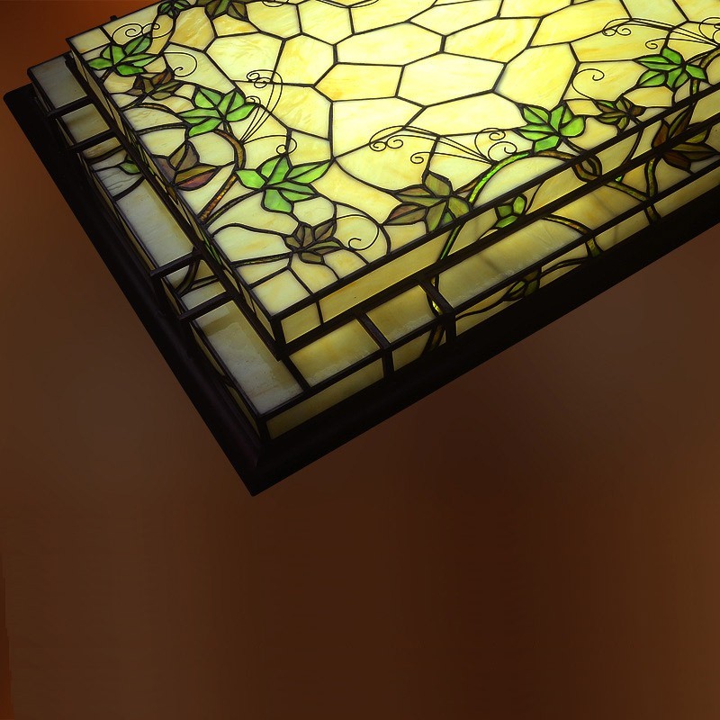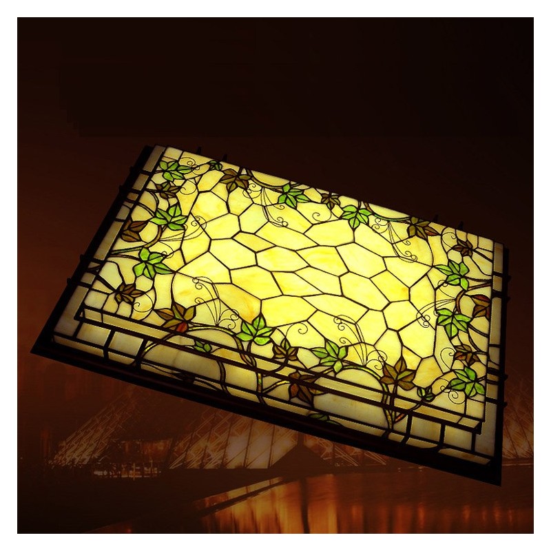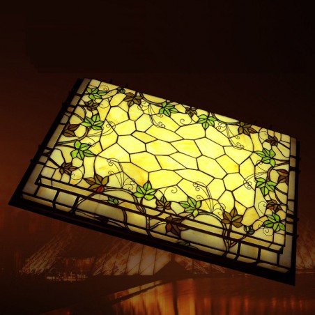 Lámpara de techo de cristal de color Tiffany rectangular de 318 cm