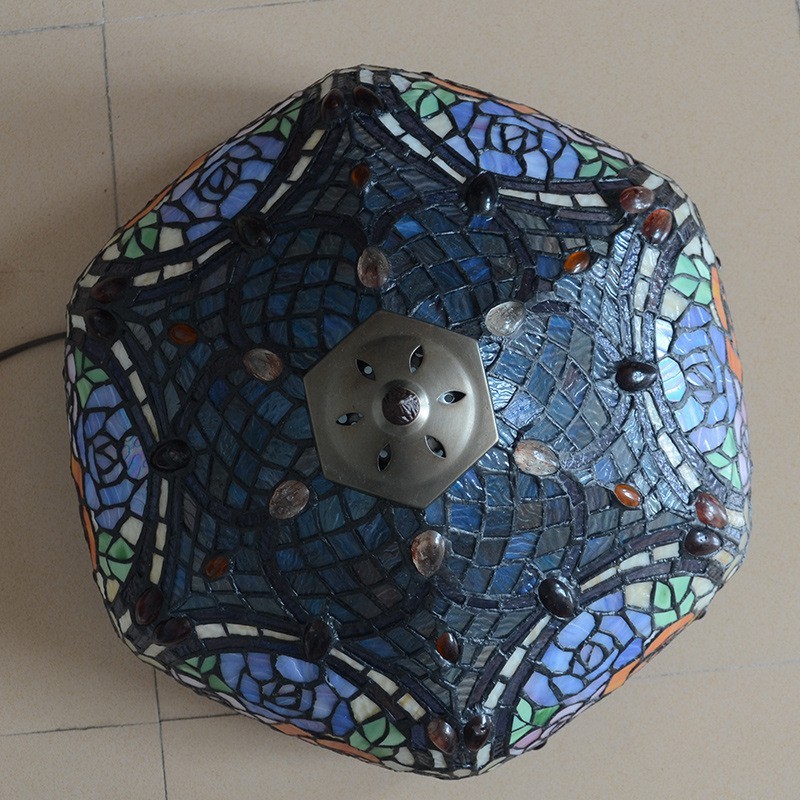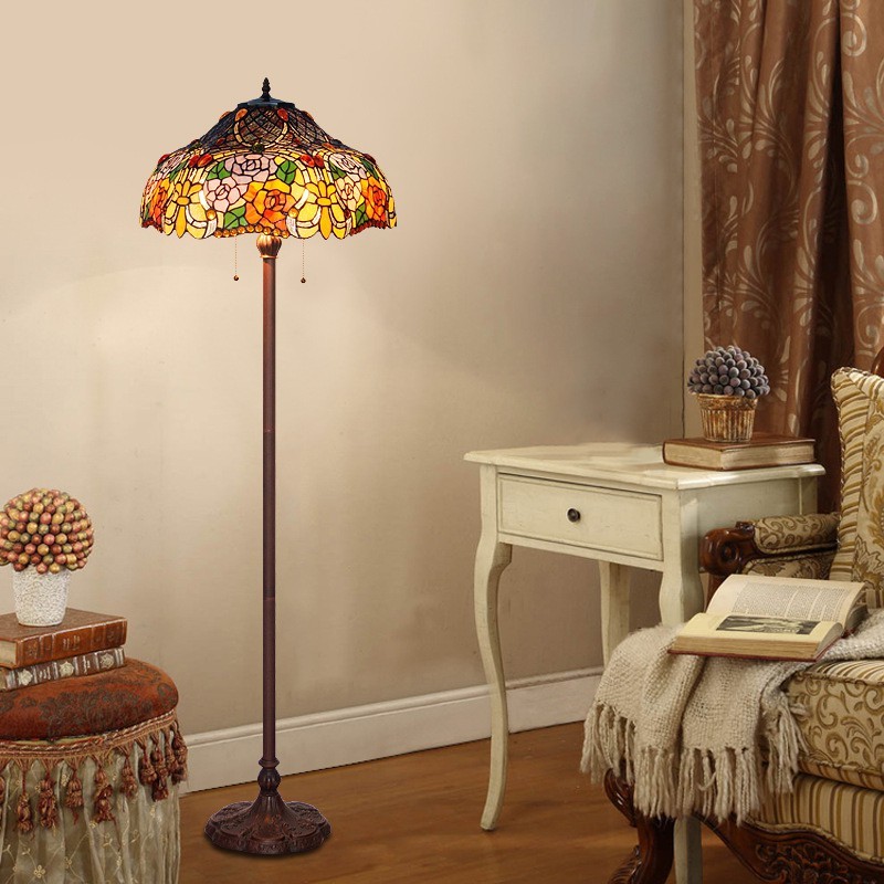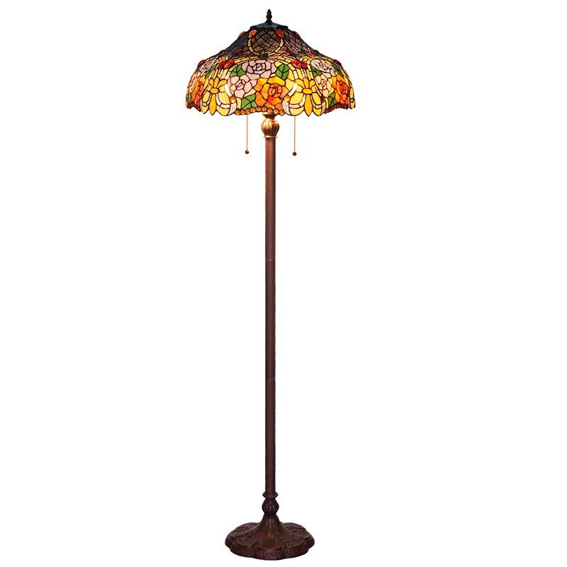 Lámpara de pie de cristal de color Tiffany en tono rosa de 45 cm