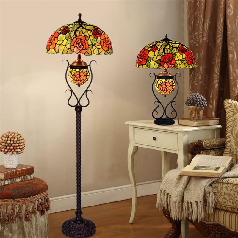 Lámpara de pie de cristal de colores Tiffany de 45 cm