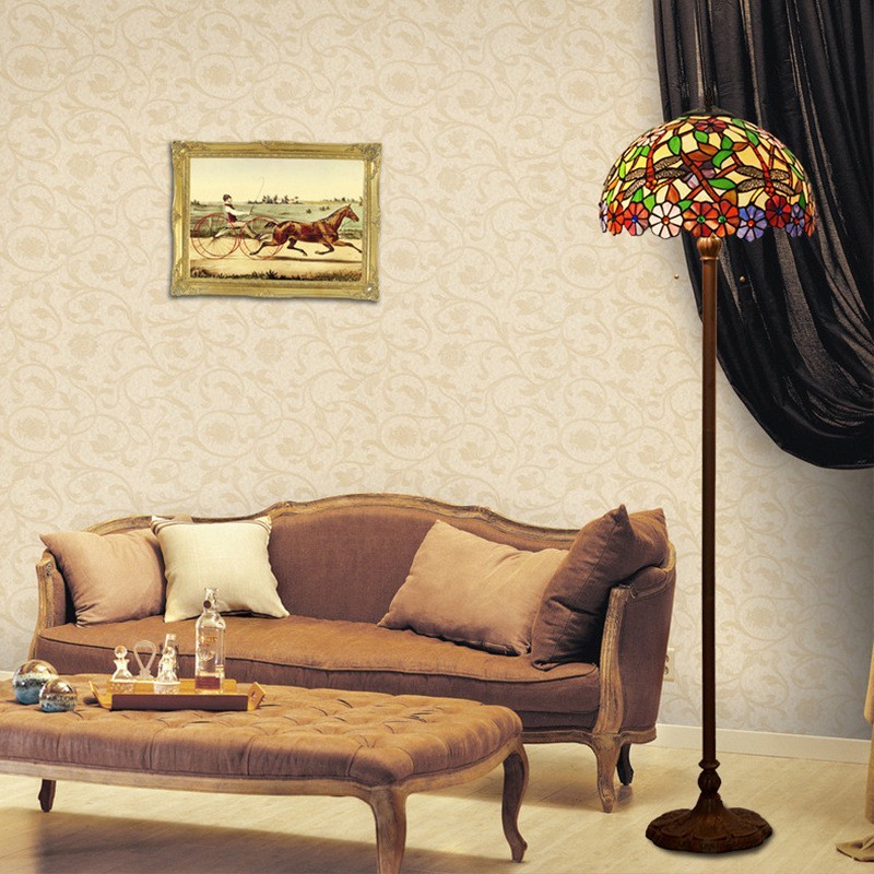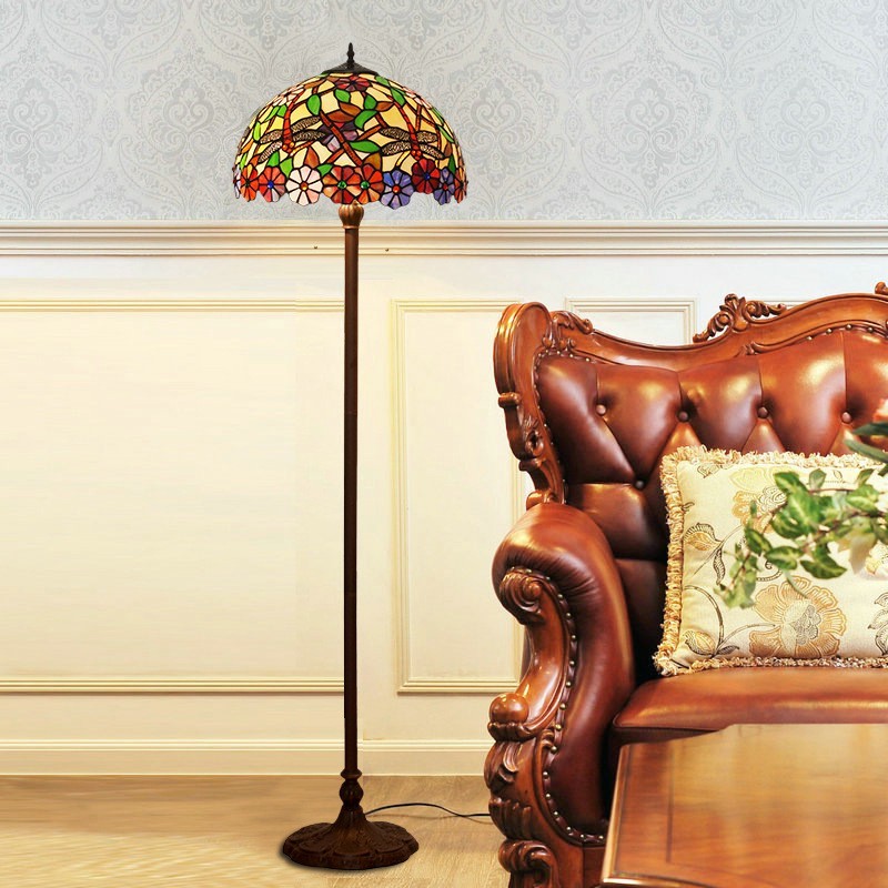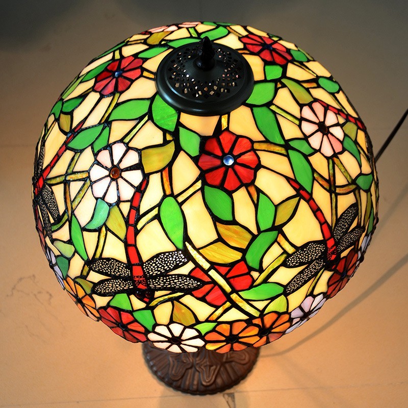 Lámpara de pie de cristal de color Tiffany con forma de libélula de 40 cm