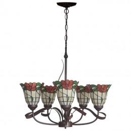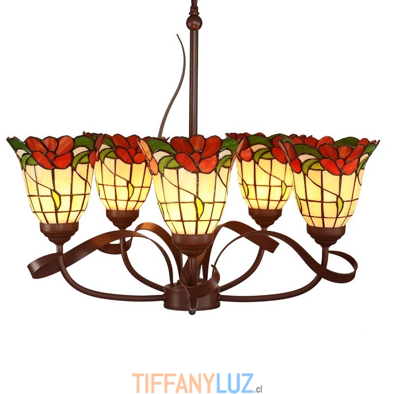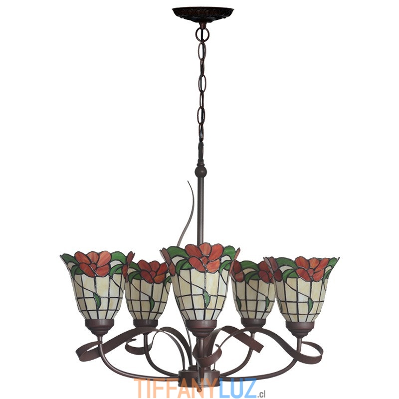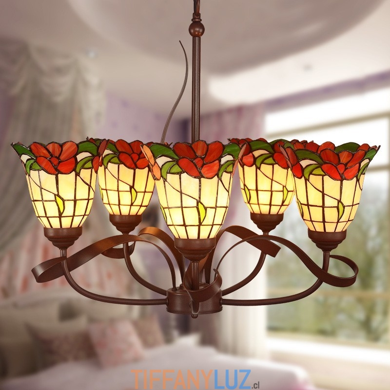 Lámpara de araña de 5 luces con vitrales de Tiffany