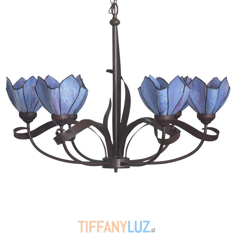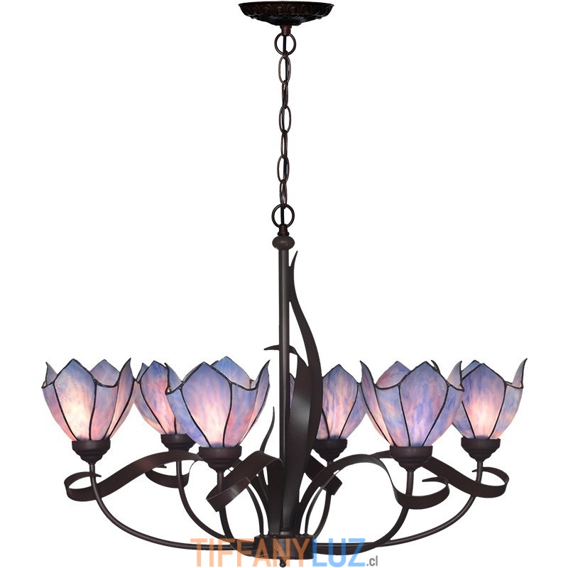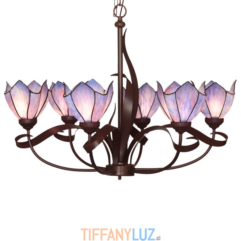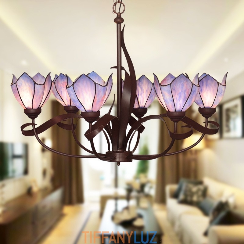 Lámpara de araña de cristal de colores Tiffany de 6 luces