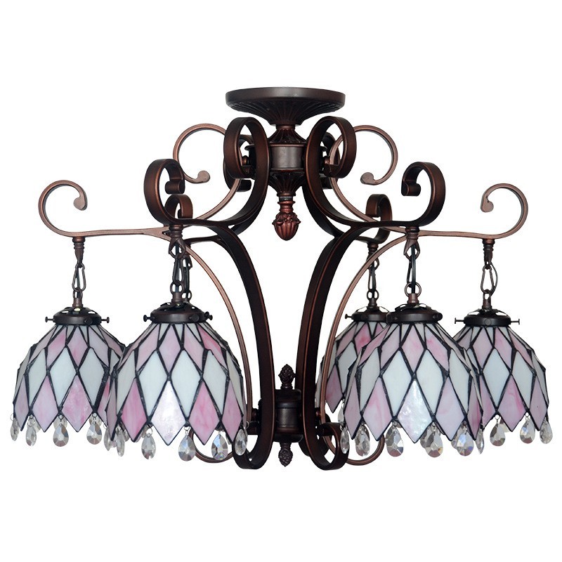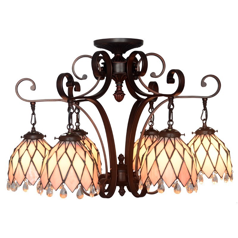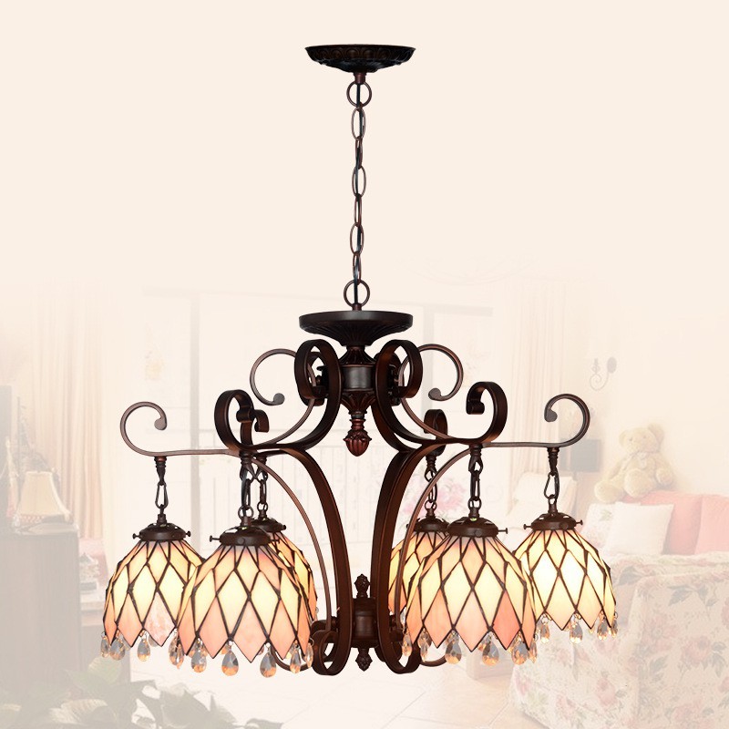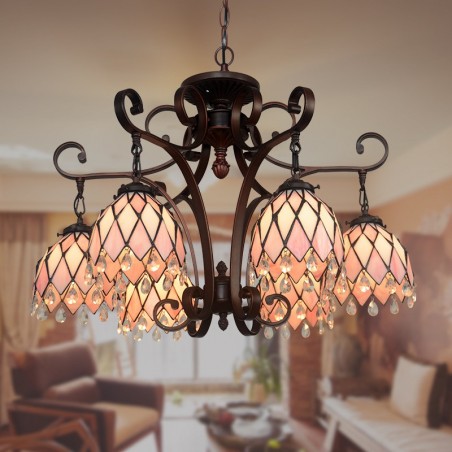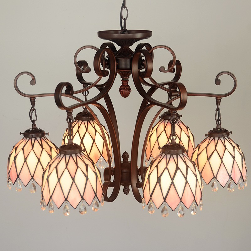 Lámpara de araña de cristal de colores Tiffany de 6 luces