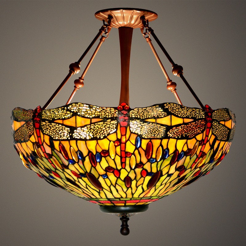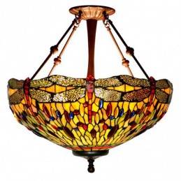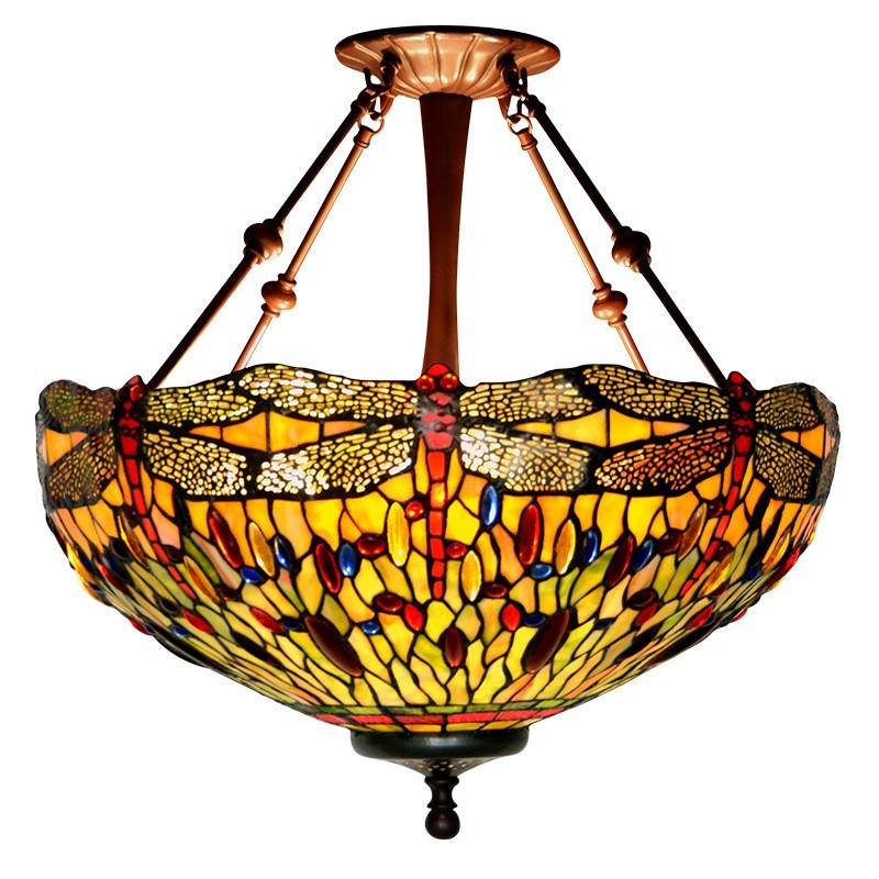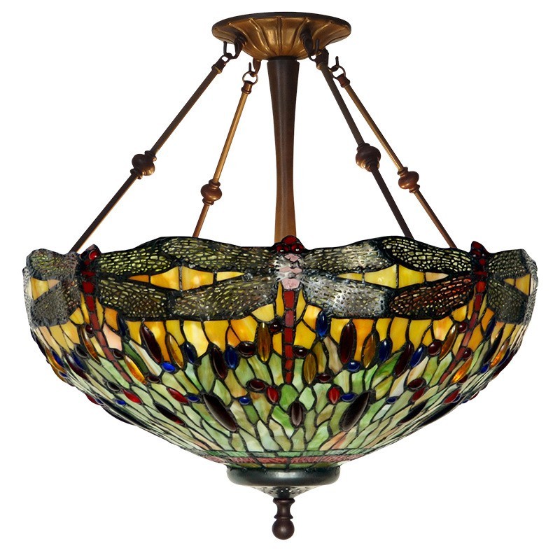 Lámpara colgante de cristal de colores Tiffany con forma de libélula de 50 cm