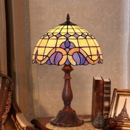 Lámpara de mesa estilo mediterráneo Tiffany de 30 cm con vitrales