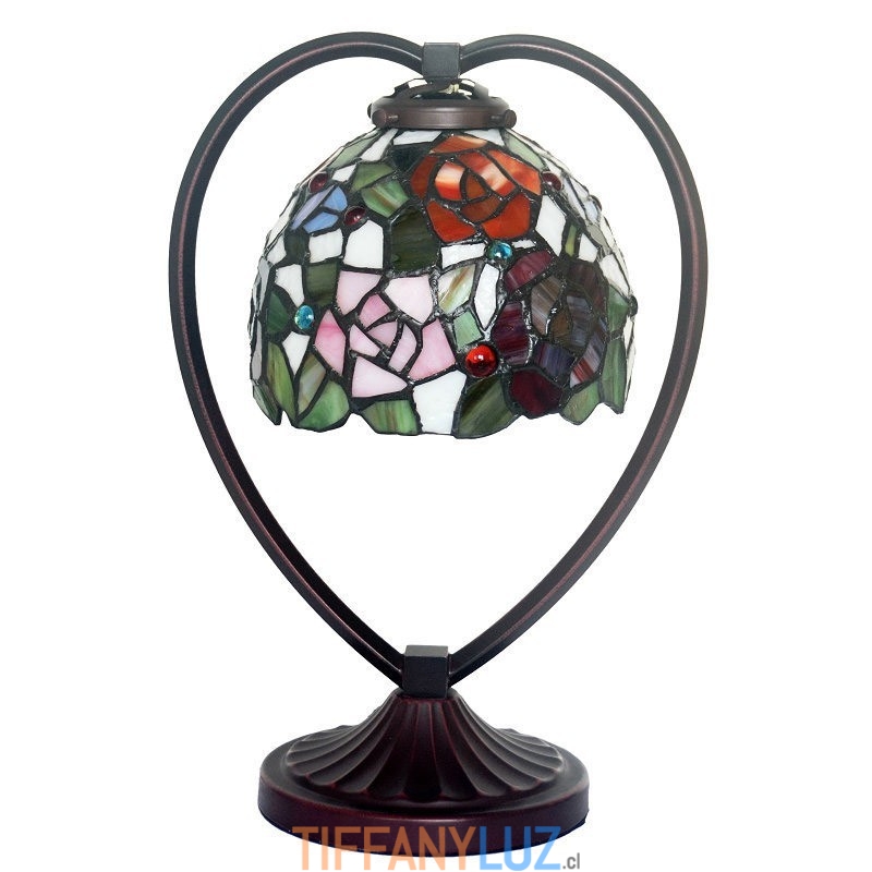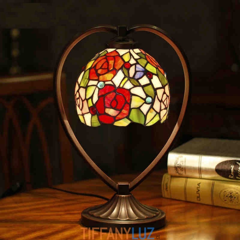 Lámpara de mesa de cristal de color Tiffany en tono rosa de 18 cm