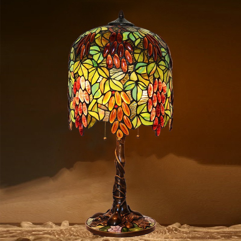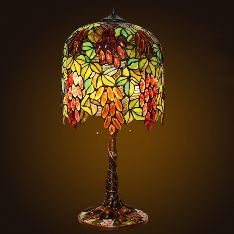 Lámpara de mesa Tiffany de cristal de colores en forma de uva de 33 cm