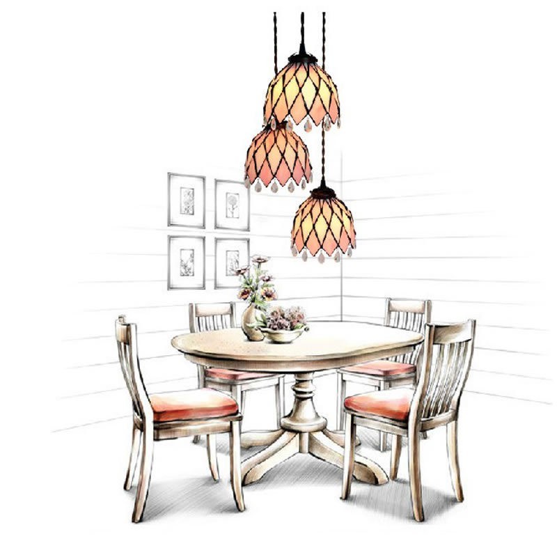 Lámpara colgante de cristal de colores Tiffany de 3 luces y 18 cm