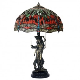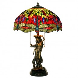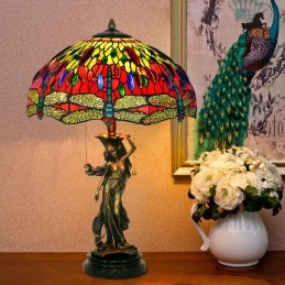 Lámpara de mesa Tiffany de latón retro con vitrales de 40 cm
