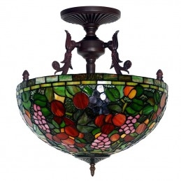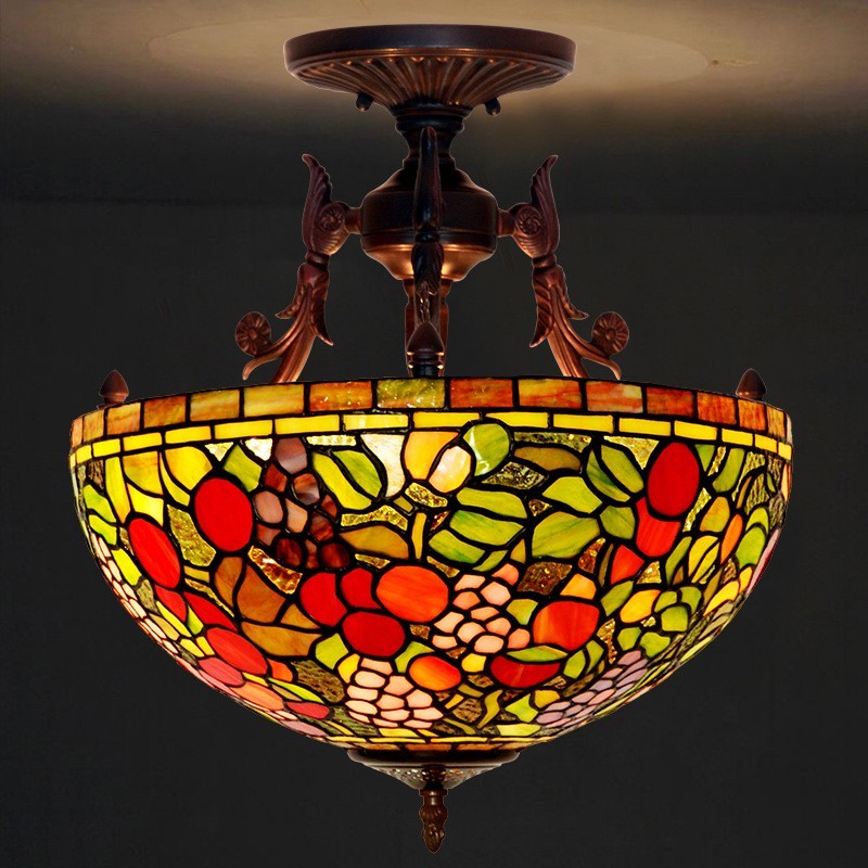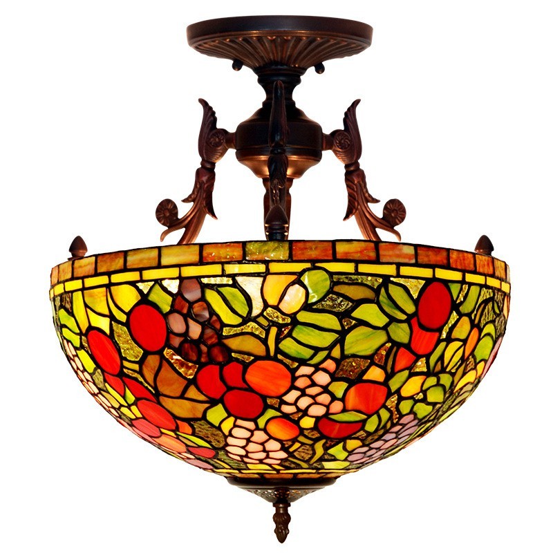 Lámpara de araña rural de 40 cm con vidrieras Tiffany
