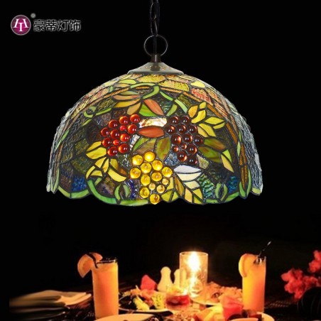 Lámpara colgante de cristal de color Tiffany con forma de uva de 30 cm