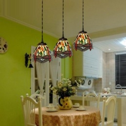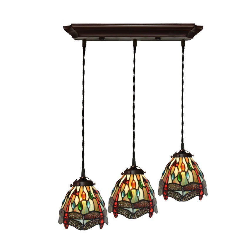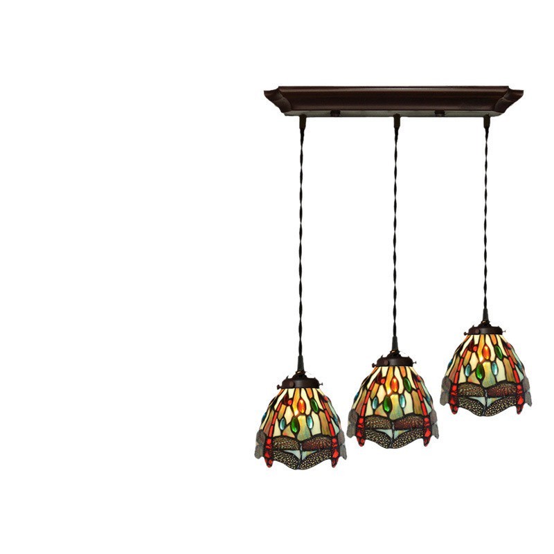 Lámpara colgante de vidrio de color Tiffany con forma de libélula de 3 luces