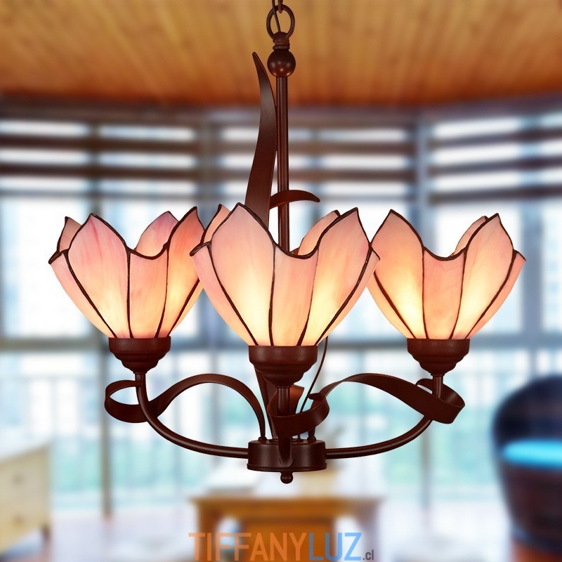 Lámpara de araña de cristal de color Tiffany de 3 luces