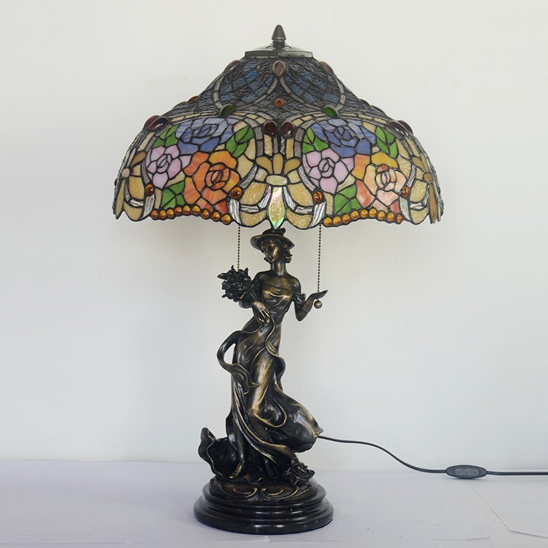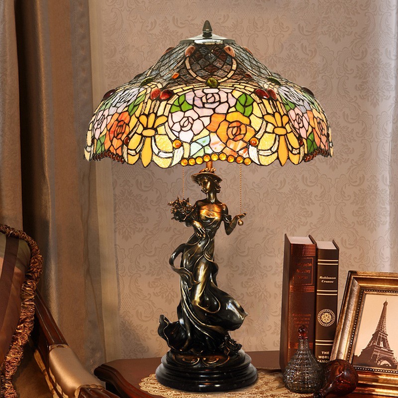 Lámpara de mesa de cristal de color Tiffany en tono rosa de 45 cm