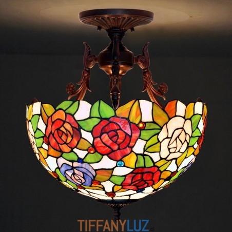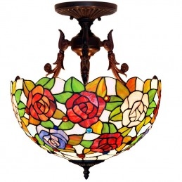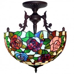 Lámpara colgante de cristal de color Tiffany en tono rosa de 40 cm