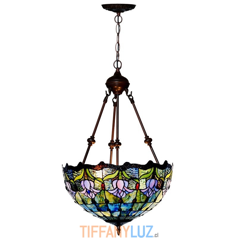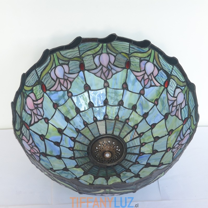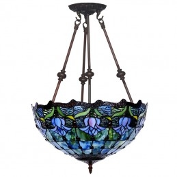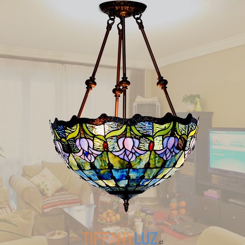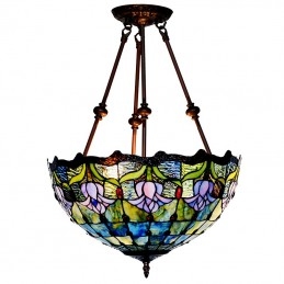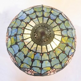 Lámpara colgante de cristal de color Tiffany con tulipán azul de 40 cm