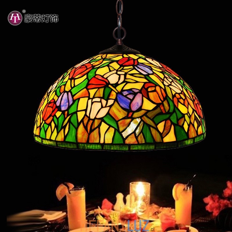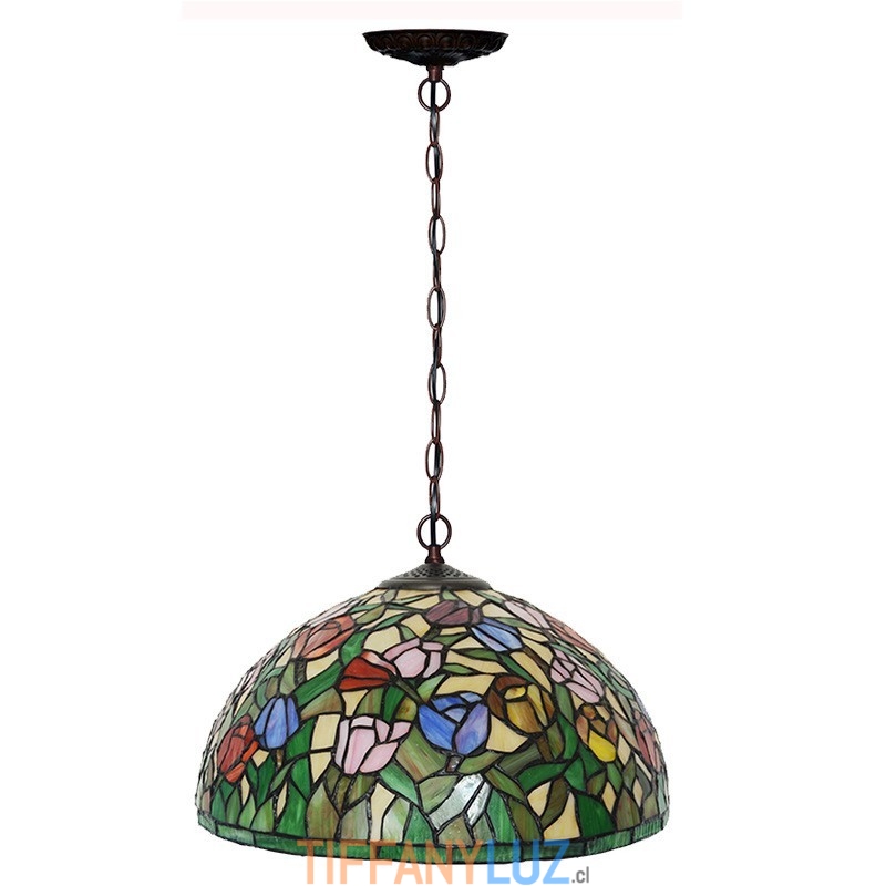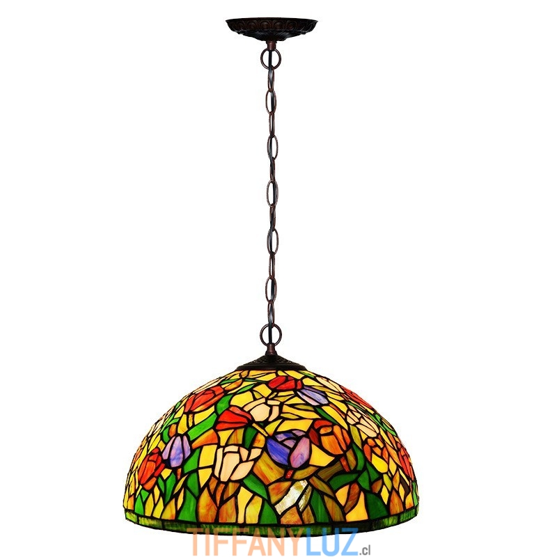 Lámpara colgante de cristal de colores Tiffany de 1 luz y tulipán de 40 cm