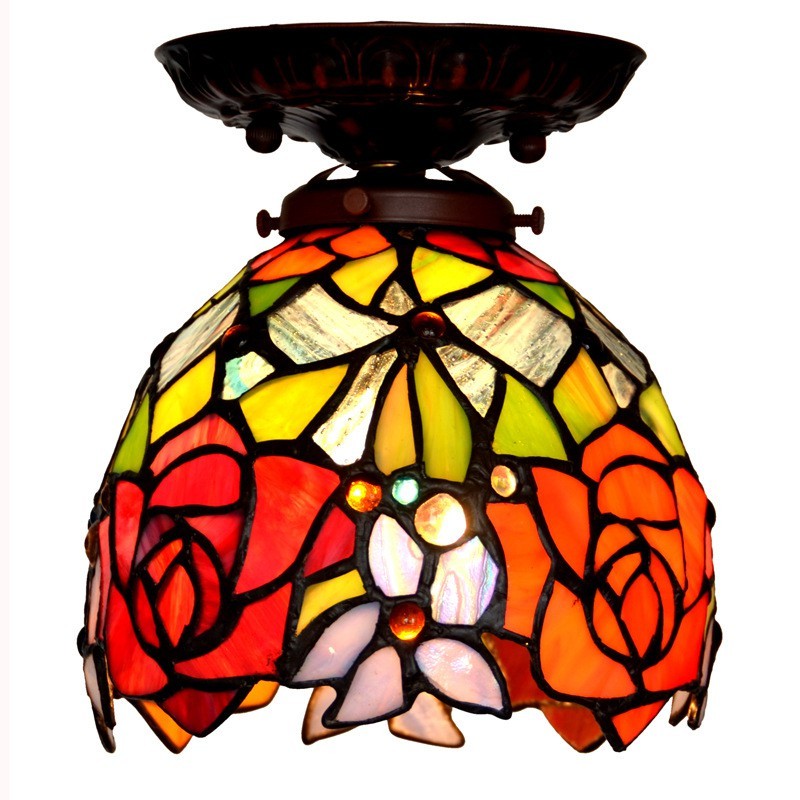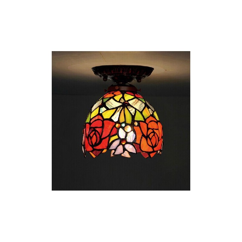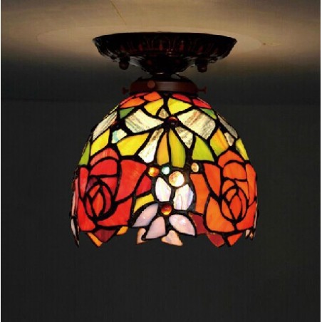 Lámpara de techo de cristal de color Tiffany Rose de 18 cm