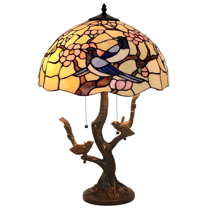 Lámpara de mesa de cristal de color Tiffany retro de 40 cm