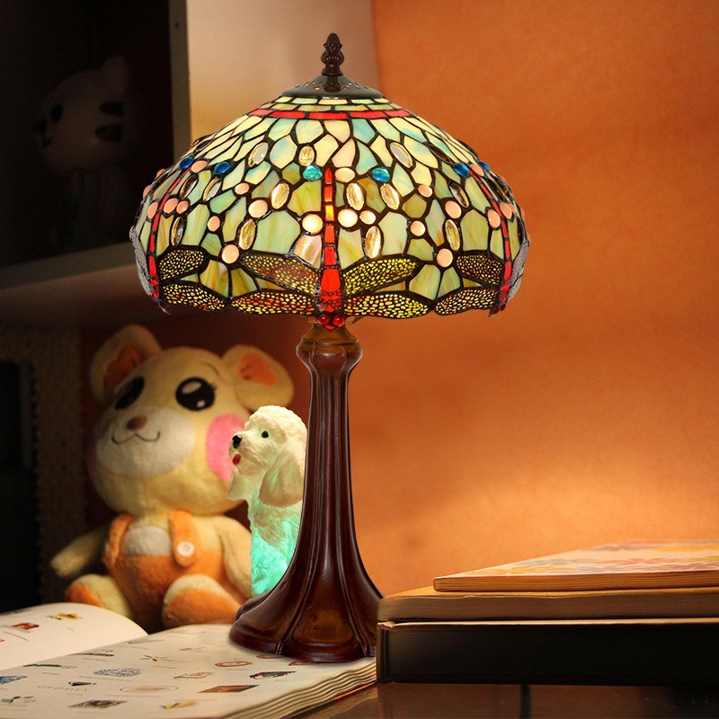 Lámpara de mesa de cristal de colores Tiffany de 30 cm