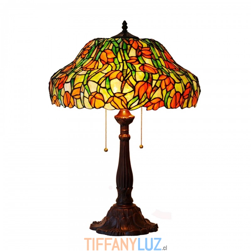 Lámpara de mesa Tiffany de cristal tintado con forma de tulipán de 45 cm