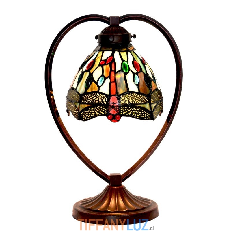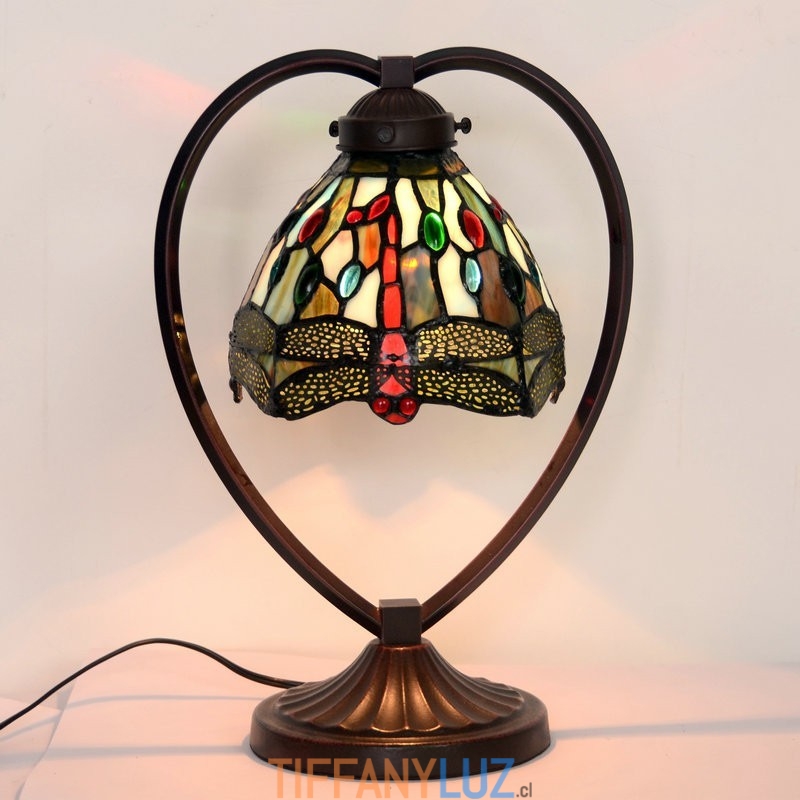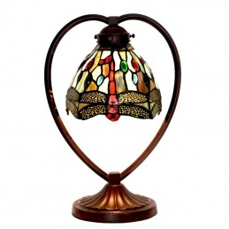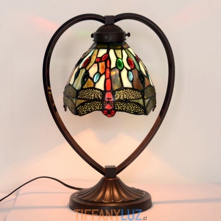 Lámpara de mesa de cristal de color Tiffany con forma de libélula retro de 18 cm