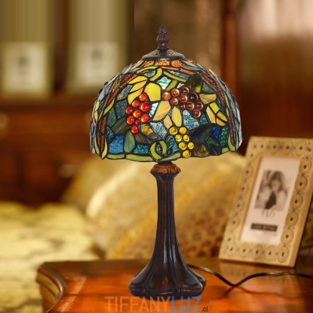 Lámpara de mesa de cristal de color Tiffany con diseño rural de uva de 20 cm