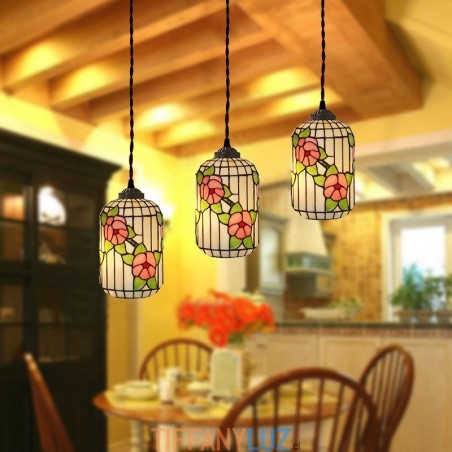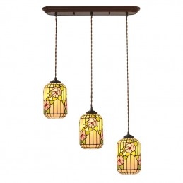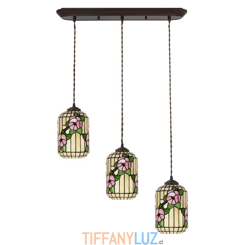 Lámpara colgante de vidrio de color Tiffany de 3 luces