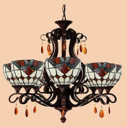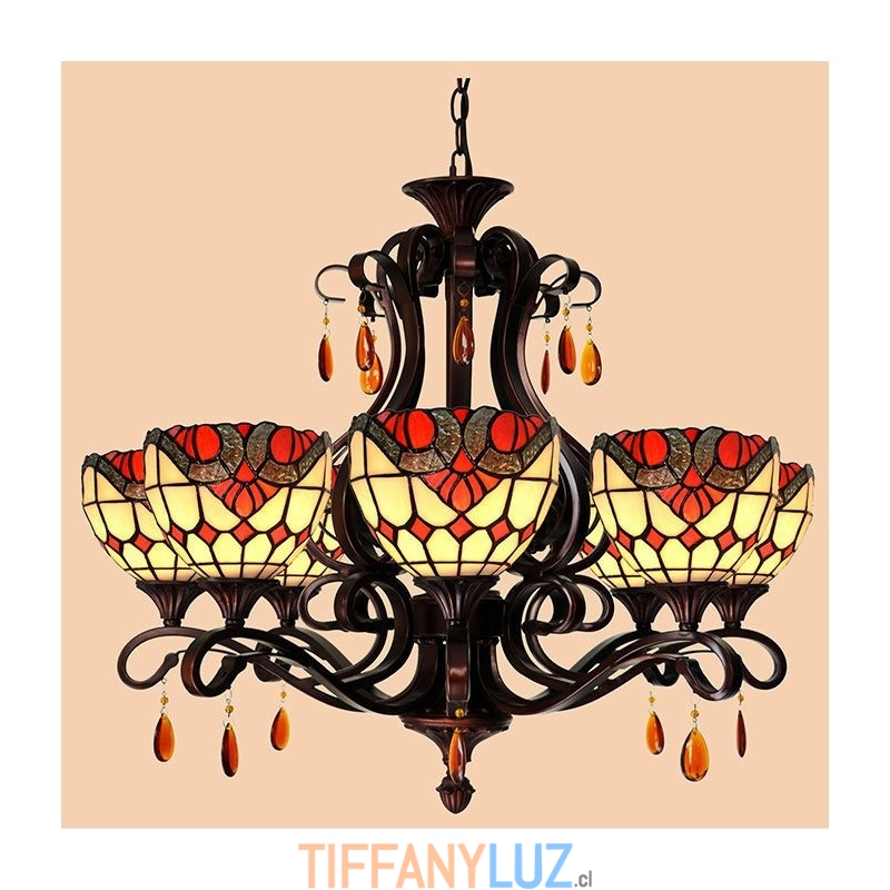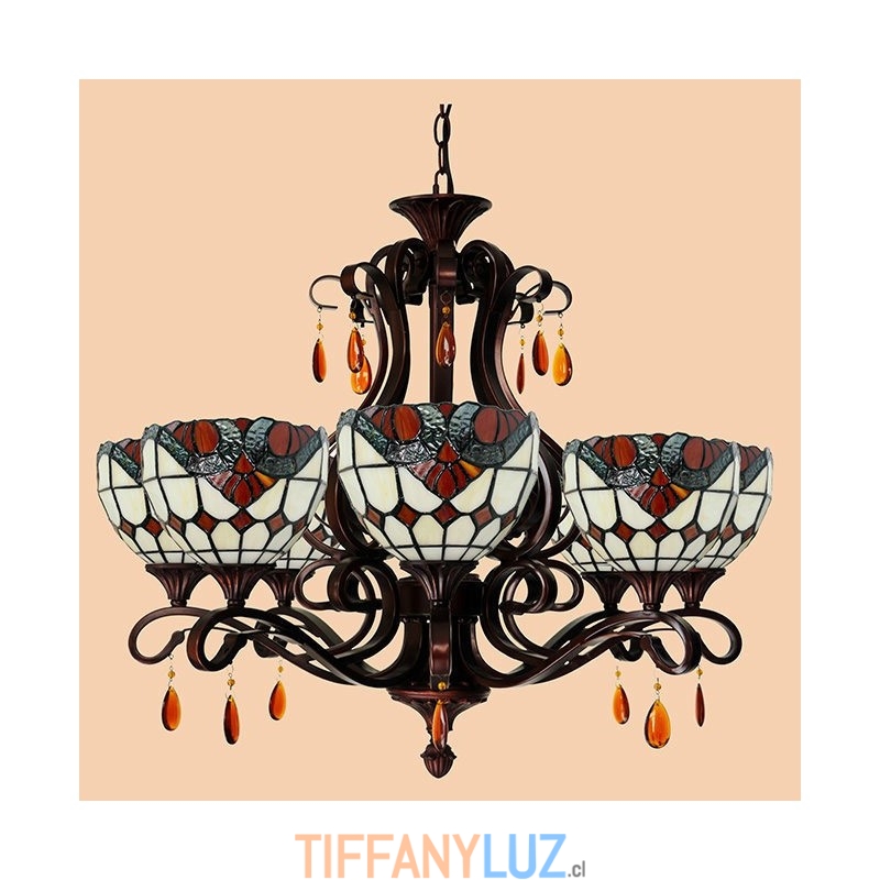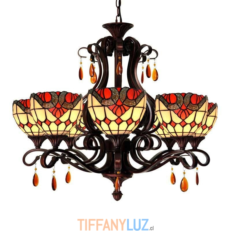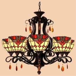 Lámpara de araña barroca de 6 luces con cristales de colores Tiffany