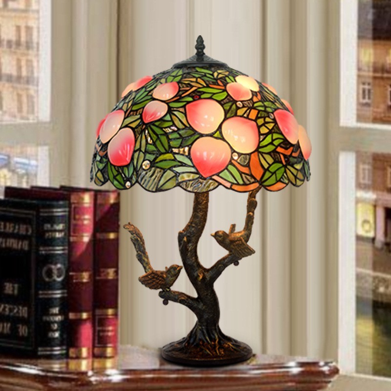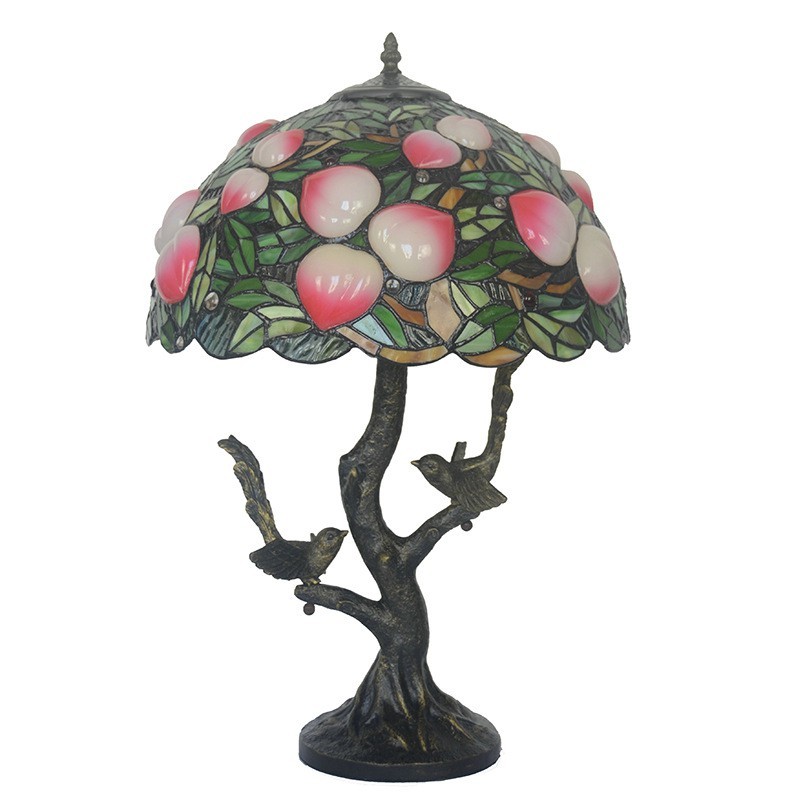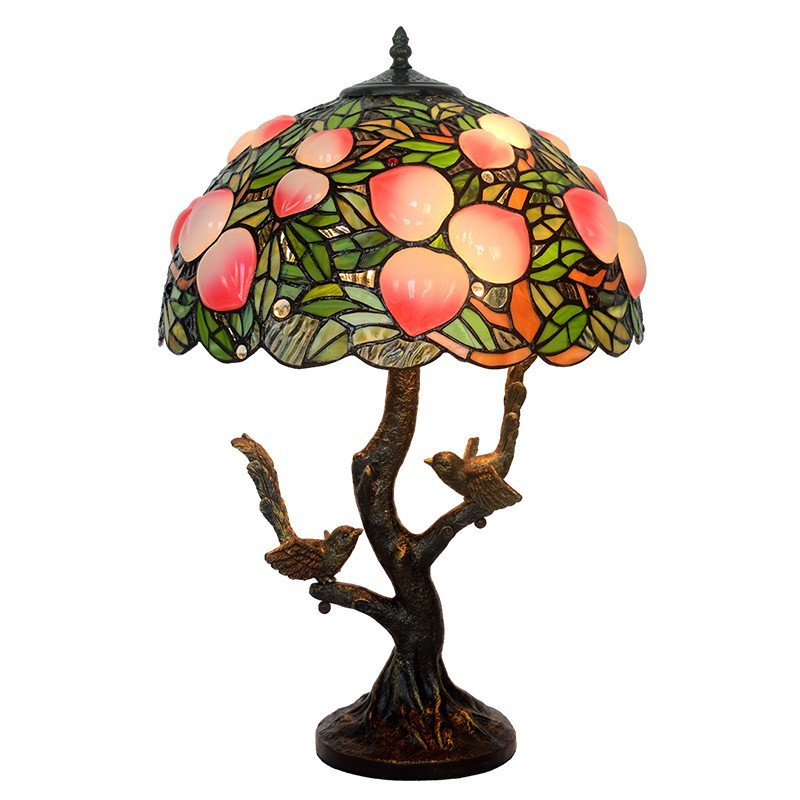 Lámpara de mesa retro de cristal de color melocotón de Tiffany de 40 cm