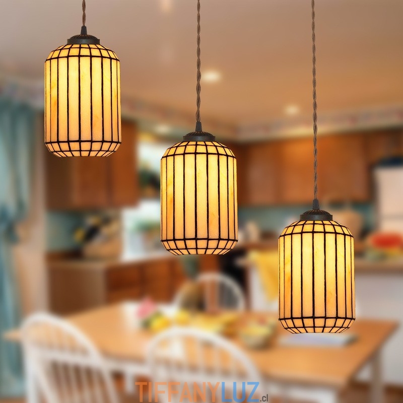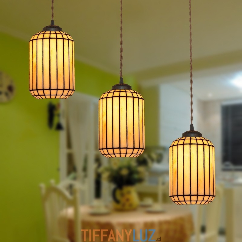 Lámpara colgante de vidrio de color Tiffany de 3 luces