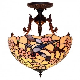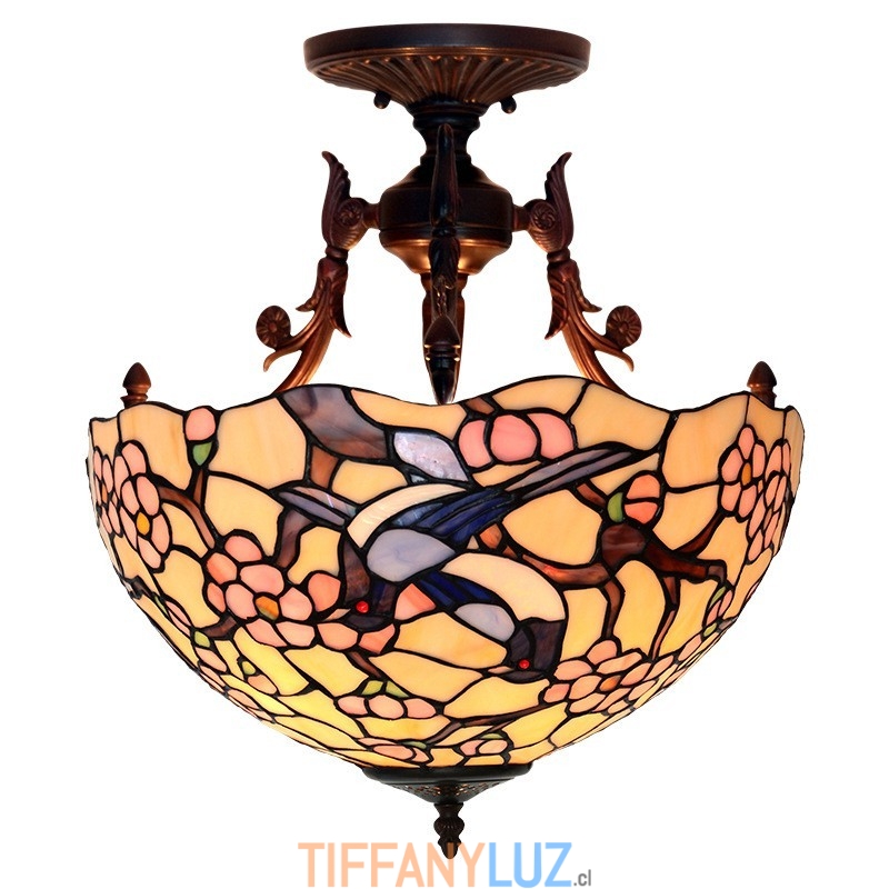 Lámpara colgante redonda de cristal de colores Tiffany de 40 cm