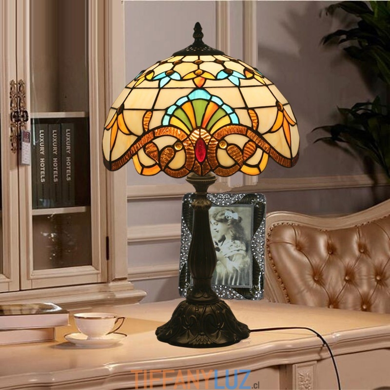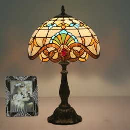 Lámpara de mesa Tiffany de estilo barroco con vitrales europeos de 30 cm