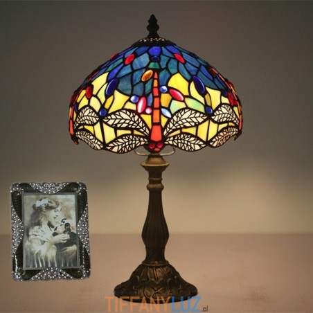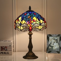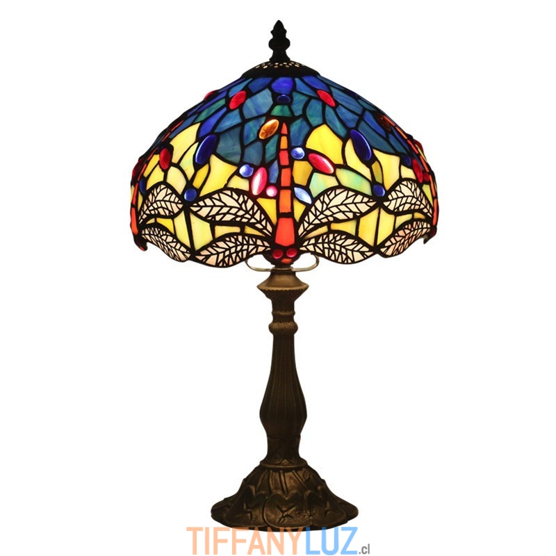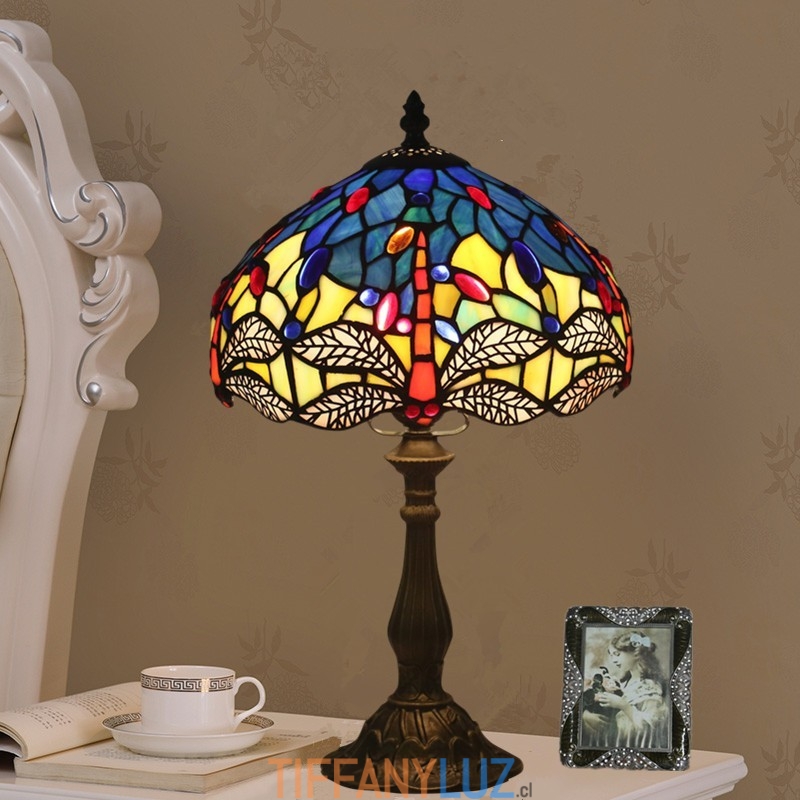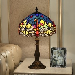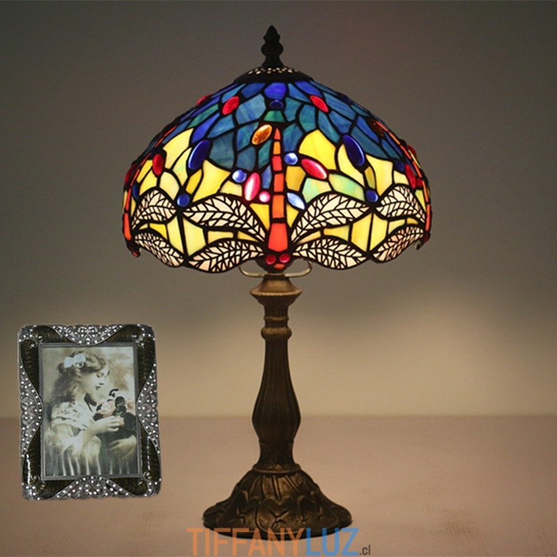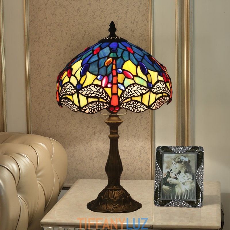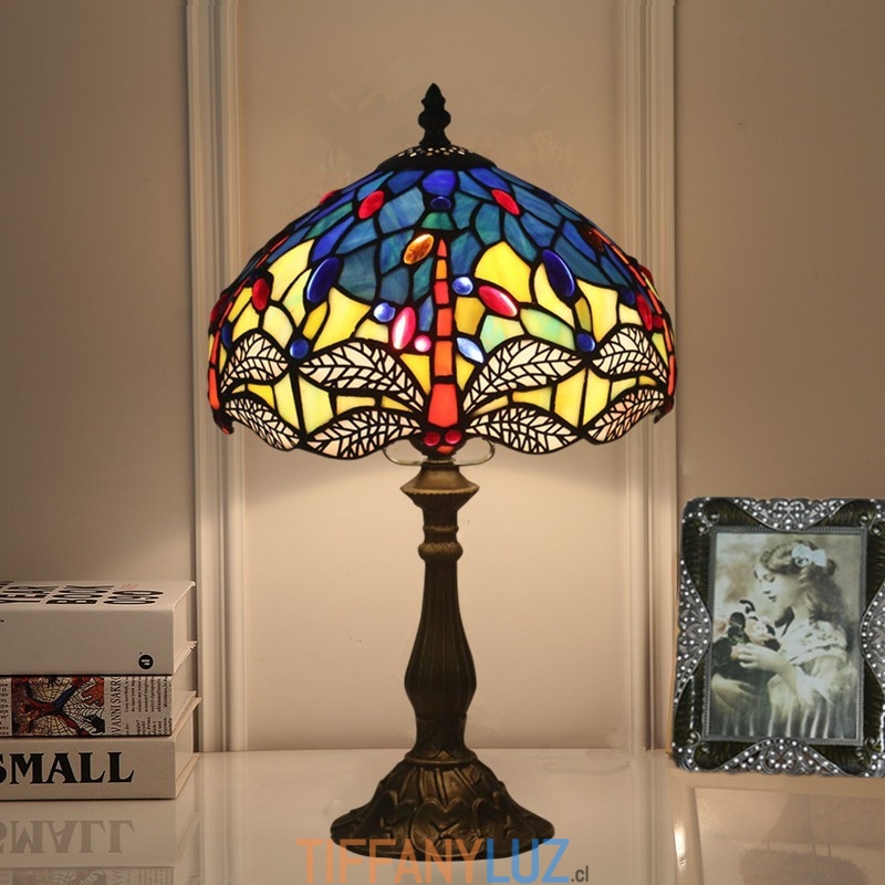 Lámpara de mesa Tiffany estilo libélula de vidrio de color europeo de 25 cm