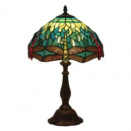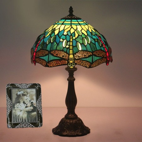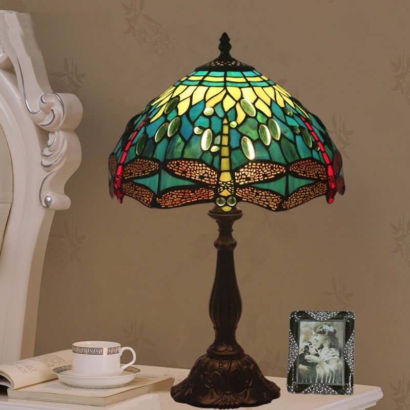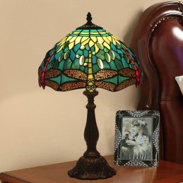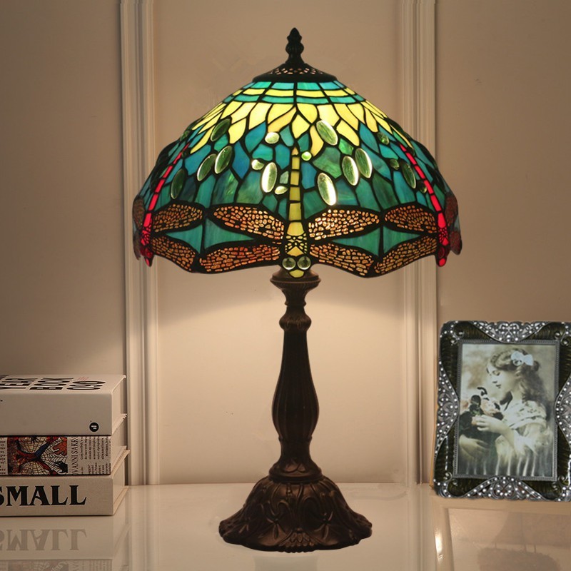 Lámpara de mesa Tiffany estilo libélula de vidrio de color europeo de 30 cm