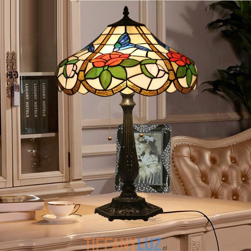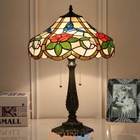 Lámpara de mesa Tiffany estilo colibrí con vitrales americanos de 40 cm