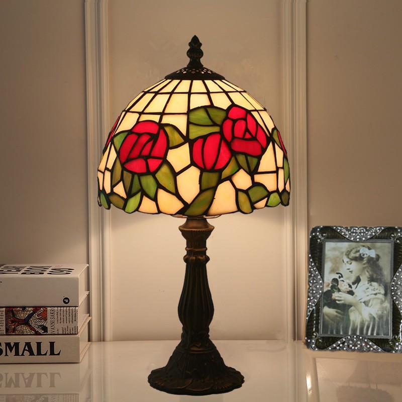 Lámpara de mesa Tiffany de cristal de colores europeo de 20 cm