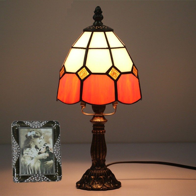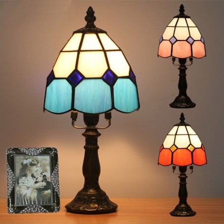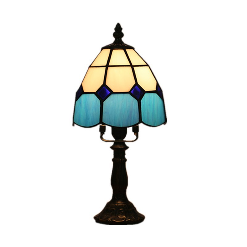 Lámpara de mesa Tiffany de cristal de color mediterráneo de 15 cm de alto y 30 cm de alto.