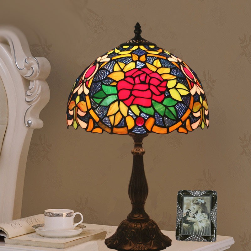 Lámpara de mesa Tiffany de cristal de colores europeo de 30 cm