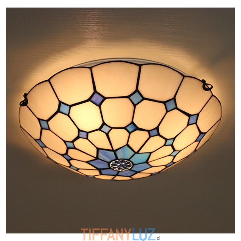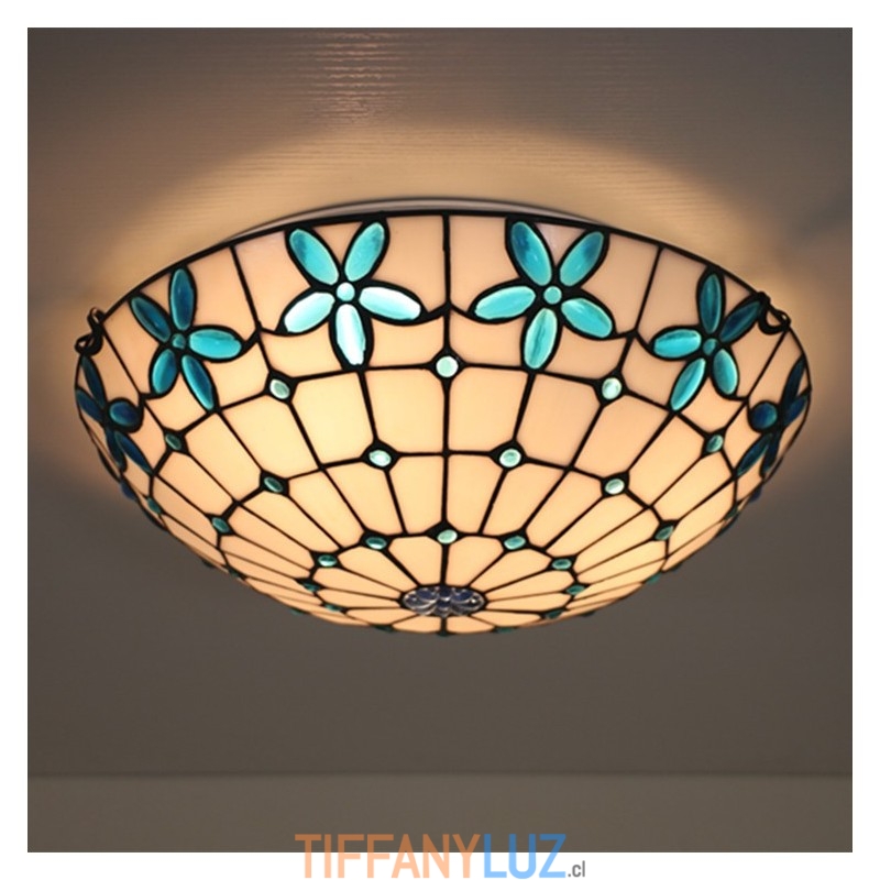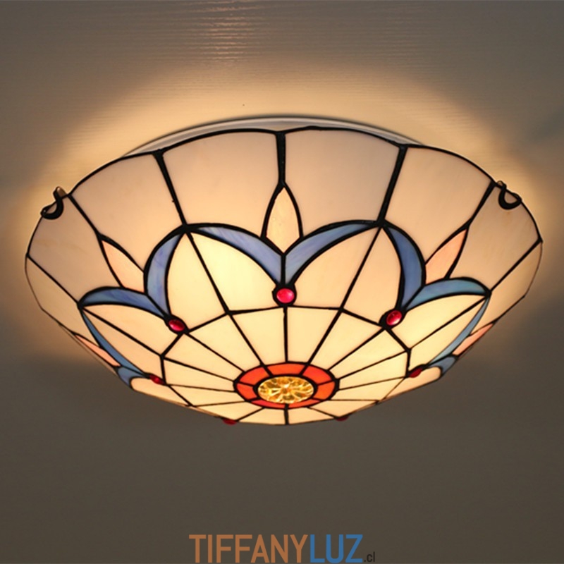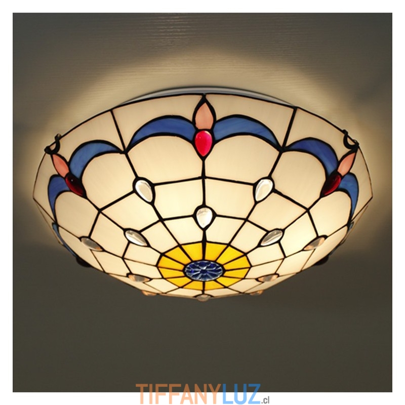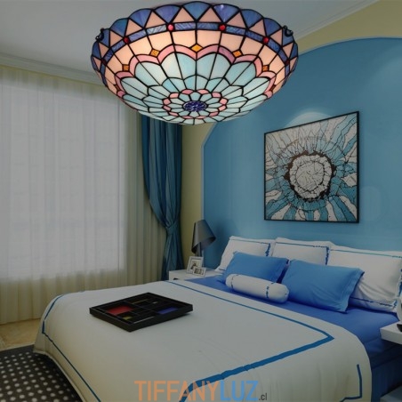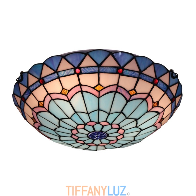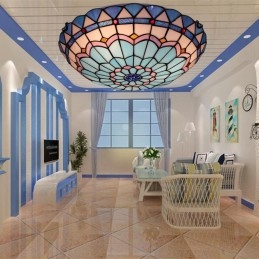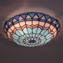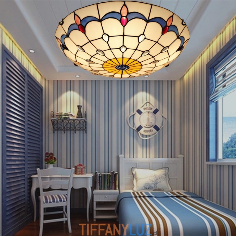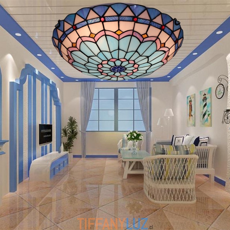 Lámpara de techo Tiffany de estilo mediterráneo con vidrieras de colores de 40 cm