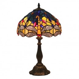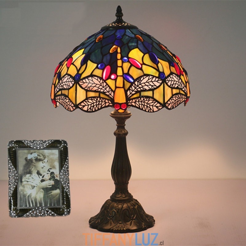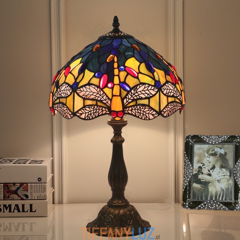 Lámpara de mesa Tiffany estilo libélula de vidrio de color europeo de 30 cm