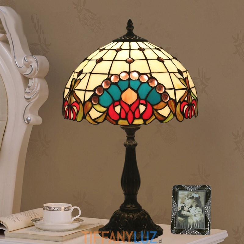 Lámpara de mesa Tiffany de estilo barroco con vitrales europeos de 30 cm